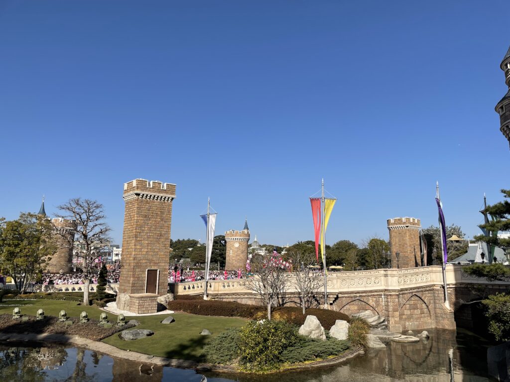 - 石垣(いしがき): 橋の土台部分や塔の基部にある石の積み方が、西洋のレンガ造りというよりは、日本の城郭で見られる**「切り込み接ぎ(きりこみはぎ)」**に近い、精巧な石垣のような重厚感を出しています。