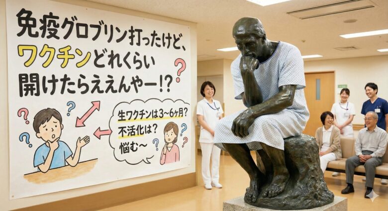 病院で「免疫グロブリンを使ったので、しばらくワクチンは空けてください」